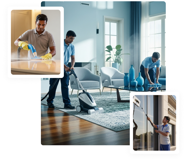 فريق رجالي مدرّب، مجهّز بأحدث المعدات ليمنحك نظافة فورية بمعايير احترافية